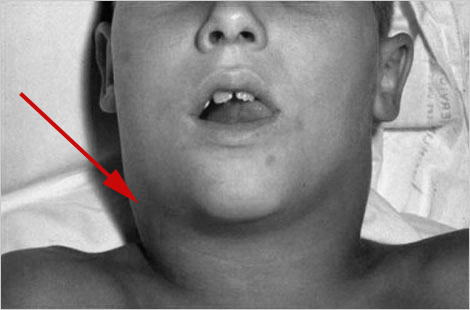 Above is the characteristic “bull neck” that typifies lymphadenopathy in diphtheria infection.
