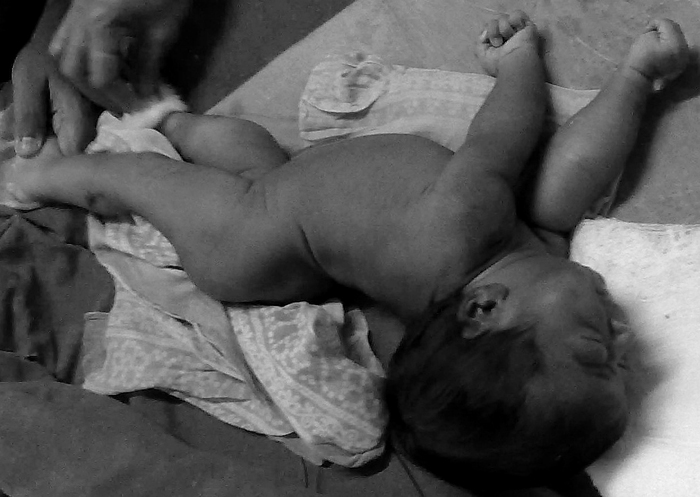 A case of neonatal tetanus in which the infant’s muscles are contracting in an opisthotonos (arched from head-to-foot) formation.