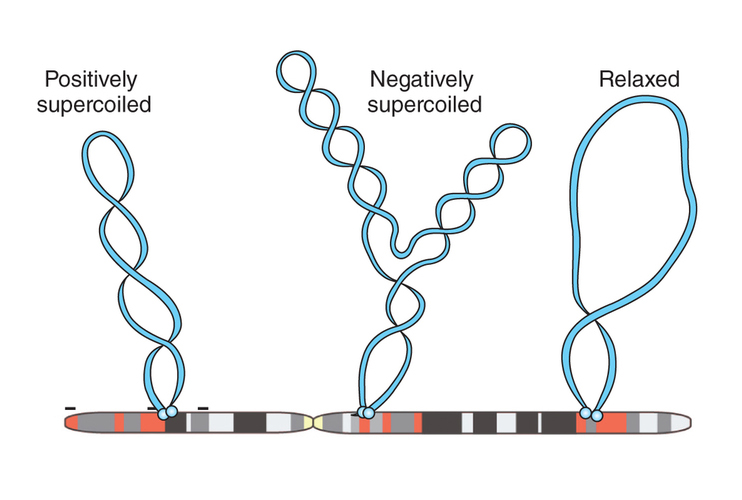Microsatellite instability has been of keen interest in oncological research. Microsatellites are short sequences in which 2-6 base pairs of DNA are repeated successively in the genome, e.g., CACACACA or CAGCAGCAG. Most frequently these occur in intronic regions, though are often typical of promoter sequences that aid in transcription initiation in numerous genes [3]. These short repeat sequences have a propensity for instability, either losing or sometimes gaining further repetitions. Napierala et al. (2005) have found that instability of these microsatellites is promoted by global and local negative supercoiling (-σ). Supercoiling is basically the sum of the DNA twisting and writhing around a central axis. The image below from Sinden (2013) gives an idea of what the different coils may look like.
