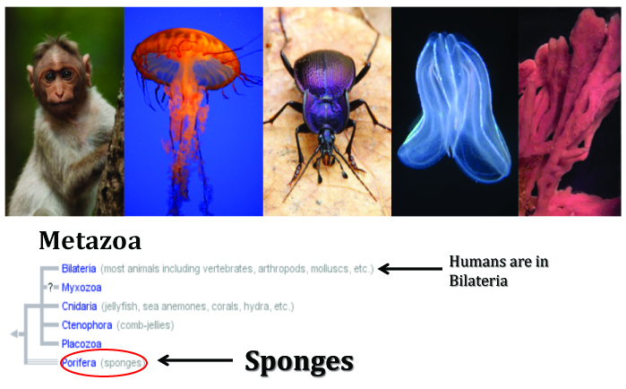Why are sponges so interesting? Well, we know nowadays that they are indeed metazoans or “animals” despite their primitive characteristics. And they’re multicellular even though those cells aren’t strictly organized into different tissues like the organ systems of animals we usually think of. For instance, they neither have a nervous system nor musculature. But Aristotle, the Father of Empiricism, was exceptionally perceptive because although sponges are animals, they’re one of the earliest known forms of animal arising over 500 million years ago in the Cambrian period and in some respect they do lie at the boundary between Plant and Animal.