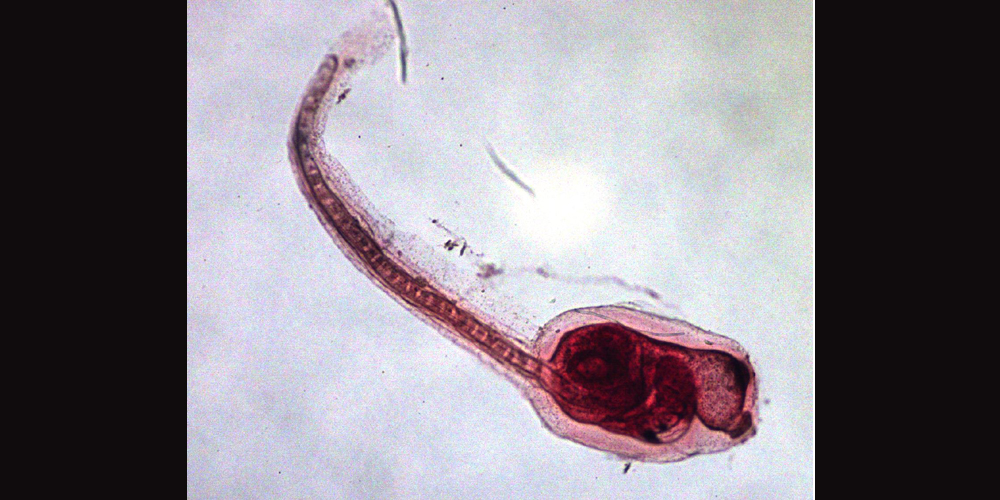 The sea squirt, a closer though still primitive relative of ours, likewise utilizes NMDA paracrine signaling [3]. In this instance, however, the sea squirt actually has a nervous system. –The weird thing about these little guys though is that they only have a “brain” during their larval stage in which they’re mobile and in search of a place to hunker down and live the remainder of their lives. Presumably the only purpose for this brain is to orchestrate the tail movements which allow the tadpole-like larva to go out in search of their new home. Once they find that special rock, they latch on with their “chin” area, face down, their little tails sticking out, and begin their metamorphosis. Below is an image of the tunicate larva borrowed from here.