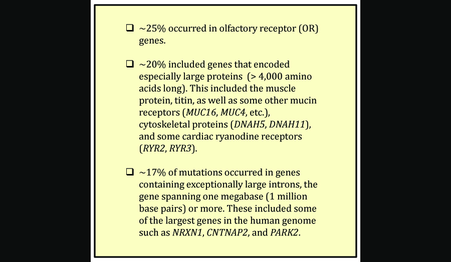So what does this mean? As Lawrence et al. suggest, OR and large genes may have higher rates of mutation in general. Therefore, specific precautions need to be taken in scientific analysis to account for the varying rates of mutations across genes in order to avoid false positives in cancer research. They state quite clearly that they believe a large number of genes which have reportedly been associated with various types of cancers are in fact not causally related to the conditions but are, in short, coincidental. Especially in the case of a disease like cancer which is characterized by a progressively disturbed and destabilized genome.