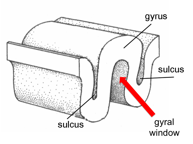 Above is an illustration of the gyral window, which is the volume of space that lies contained within a gyrus.