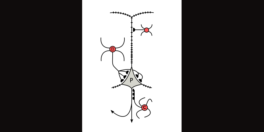The illustration above shows an excitatory pyramidal neuron receiving input from different kinds of GABAergic interneurons. Image borrowed from here.