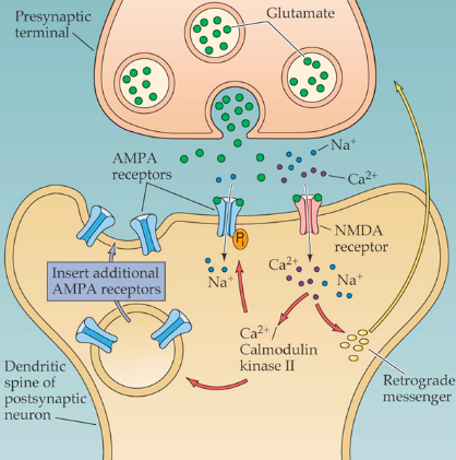 Long-term potentiation (LTP) is a strengthening of synapses based on previous activity, which is usually NMDA receptor-dependent, and it is roughly equated with the molecular process of “learning”. NMDA receptors (NMDAR) bind the excitatory neurotransmitter, glutamate, opening ion channels that allow sodium and calcium into the cell. Calcium in particular is important for controlling LTP given that the ion sits upstream of many cellular functions.