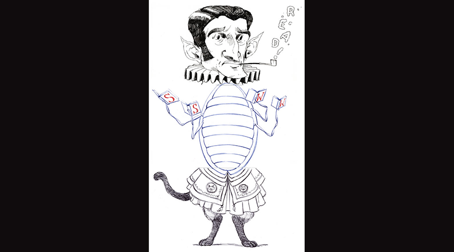 An example of an Exquisite Corpse, a multi-artist rendering in which each artist is blind to the others’ works until completion. It is a parlor game that was refined by the French Surrealists such as André Breton.
