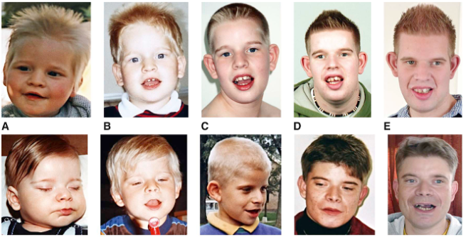 Each of these are somewhat extreme examples of craniofacial dysmorphism, most likely due to the fact that they’re caused by rare mutations that have serious consequences for tissue development, including the brain, when they do occur. Most of these individuals tend to have varying degrees of intellectual disability alongside their other features.