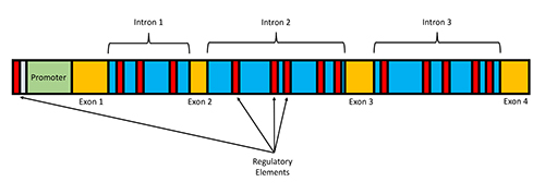 There are some genes– close to 4,000– within the human genome that are considered “housekeeping genes” [3]. As you can probably guess by their name, these genes are involved in the daily upkeep and metabolism of cells. As such, because these functions are foundational to every cell within the body at every moment during its life, they are constitutively expressed. These genes have relatively short introns and contain comparatively few noncoding regulatory sequences that regulate aspects of their expression primarily because they are constantly expressed [2]. Complex patterns of regulatory elements are simply unnecessary for these genes.