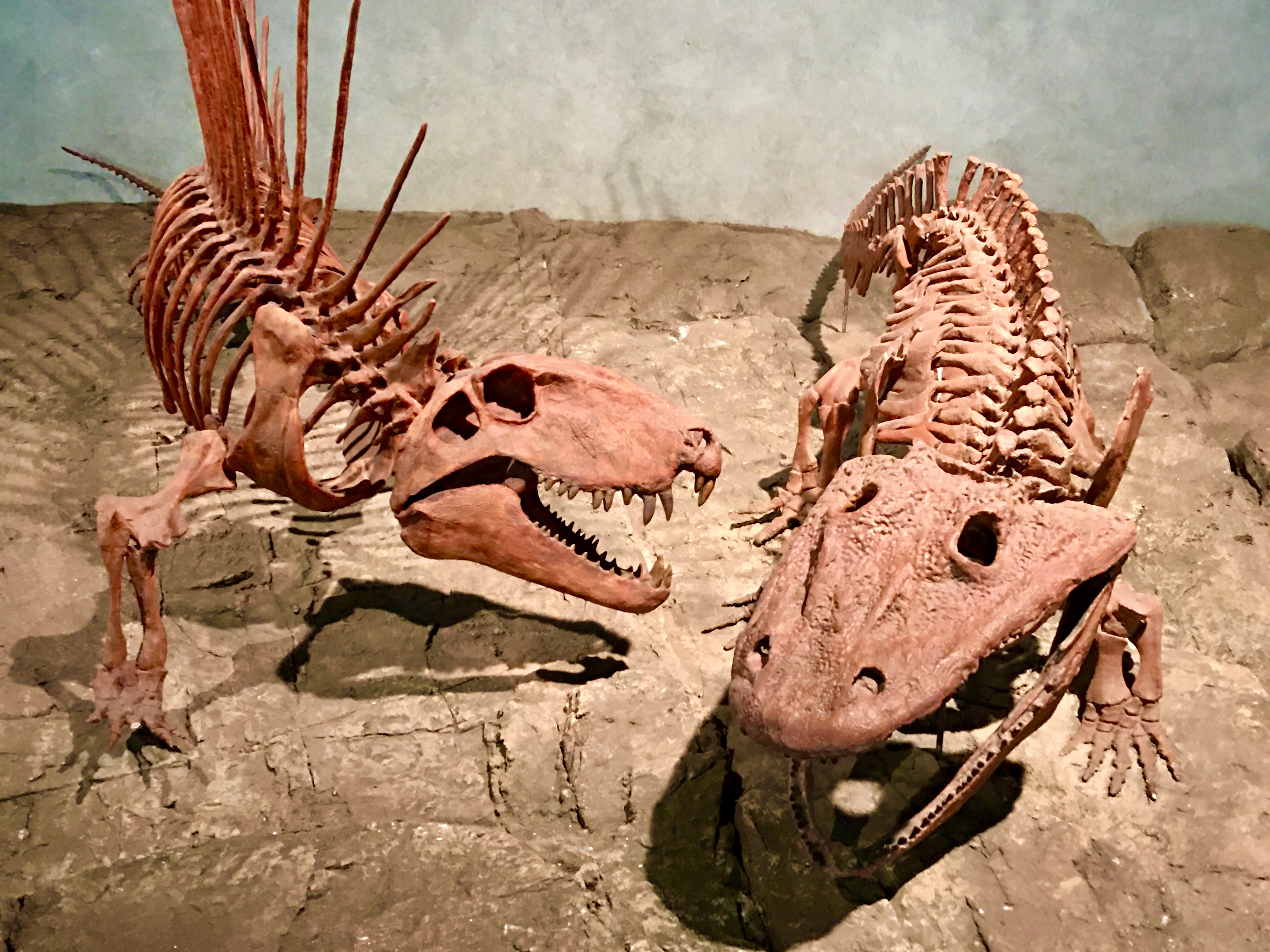 And with that, I’ll leave you with a picture of the synapsid, Dimetrodon, and the amphibious Eryops, courtesy of the Denver Museum of Nature and Science. Enjoy!